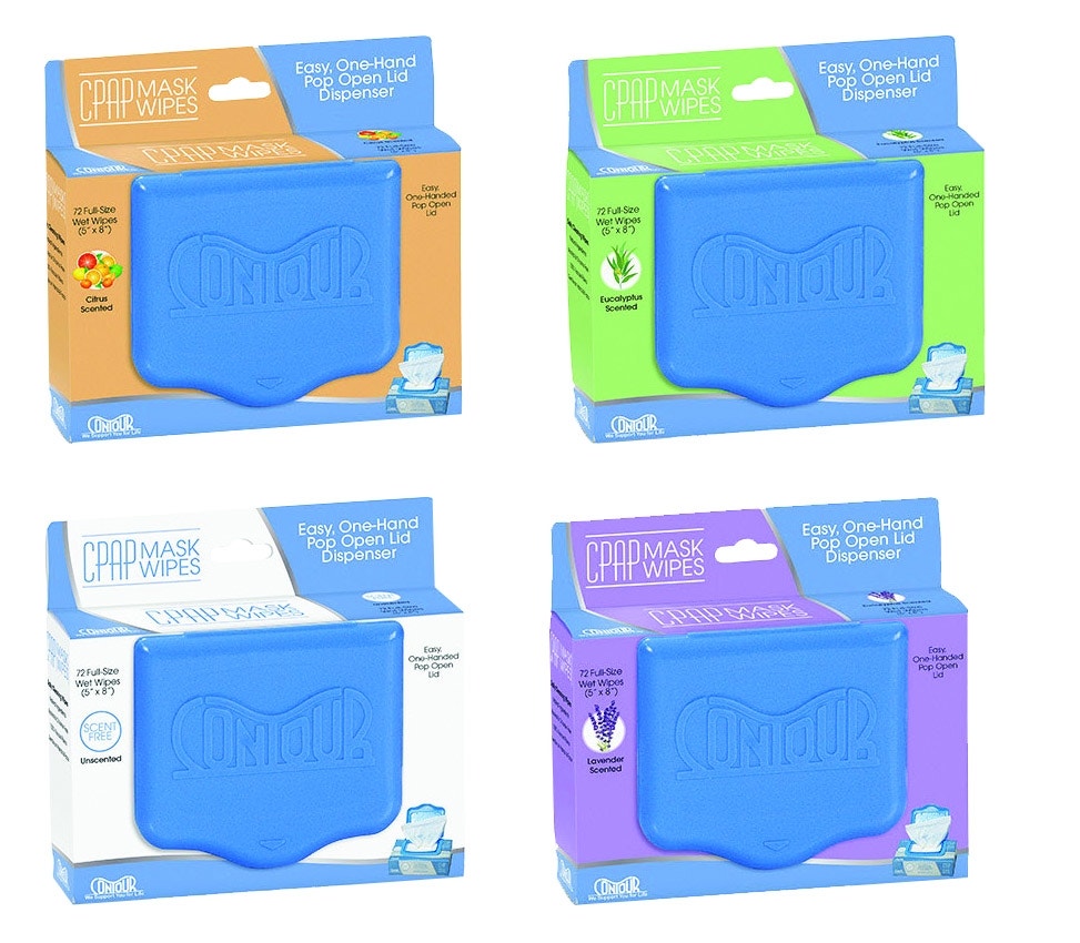 These new CPAP wipes from Contour Health offer an easy way to quickly clean your CPAP equipment. They are available in 4 different scent options: No Scent, Lavender, Citrus, and Eucalyptus. Sold in a new stackable box with 72 wipes per box. Each box is resealable to maintain product freshness. Contains 100% natural cleansers derived from coconut and other plant extracts.