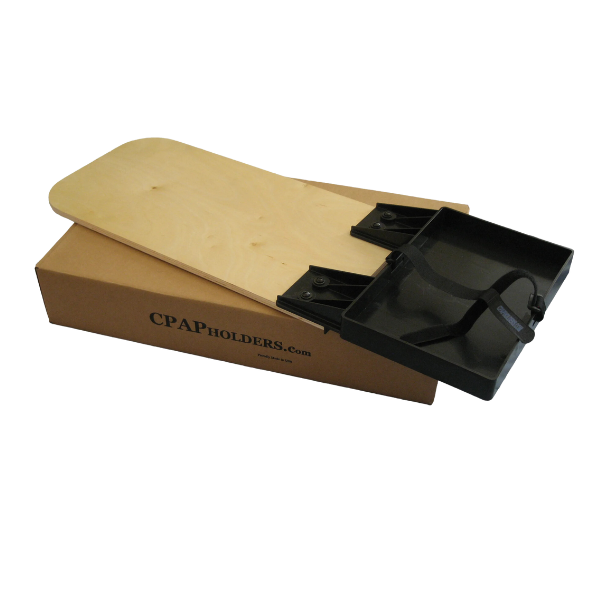 The CPAP Holder by Roscoe makes it easier to free up space on your nightstand or bed side table while keeping your machine secure and close at hand. Place the machine in the tray after slipping the support board between your mattress and box springs.