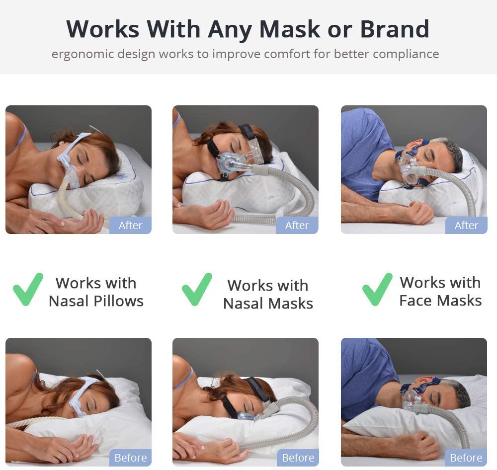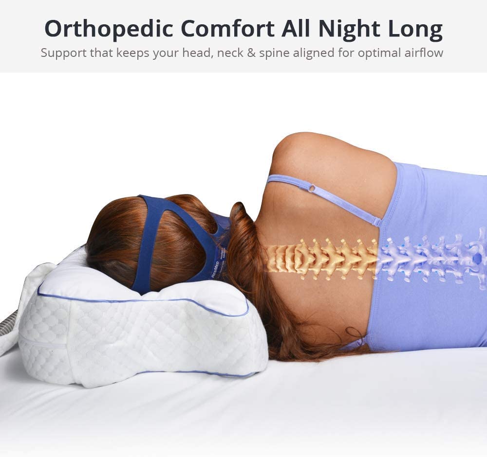 Proper alignment means less neck pain, fewer air leaks, and better CPAP compliance for sleep apnea patients. Comfort accessories like CPAP bed pillows help take your sleep therapy experience to the next level, making it that much easier for CPAP users to stick with it. Your CPAP machine can’t do its job if you’re not comfortable. Side, back and stomach sleepers can improve their CPAP comfort instantly with this ergonomic memory foam pillow.