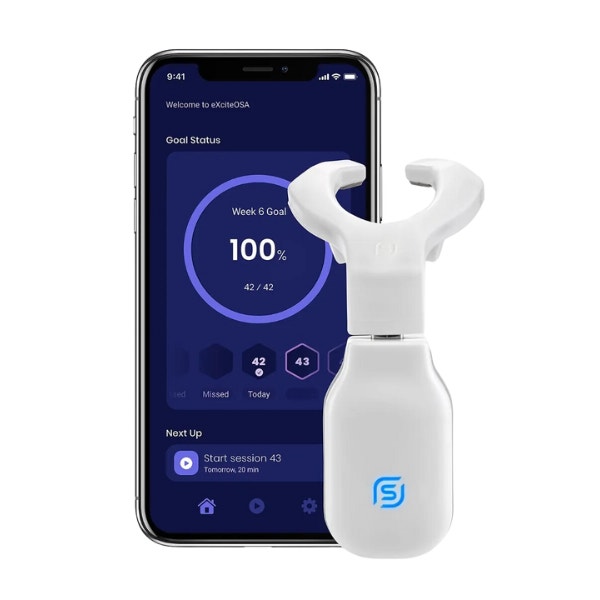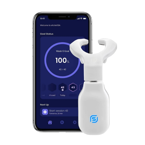 Experience better sleep and easier therapy for snoring and mild OSA with the eXciteosa device! This innovative device provides quick 20-minute daytime treatment for snoring and mild obstructive sleep apnea — making it the easiest, fastest, and most simple way to experience daily treatment for sleep apnea.