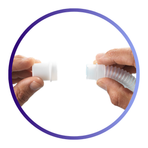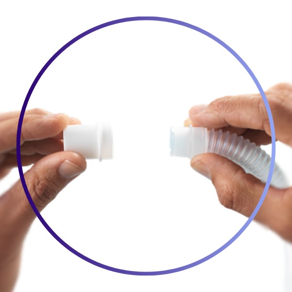 Attach the swivel to your Evora™ mask short tube and connect to your CPAP, BiPAP, or APAP machine tubing.