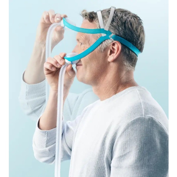 - Connect the Swivel to the CPAP hose and with the CPAP on, readjust the Back Strap until the mask seals and the Seal feels comfortable under your nose.