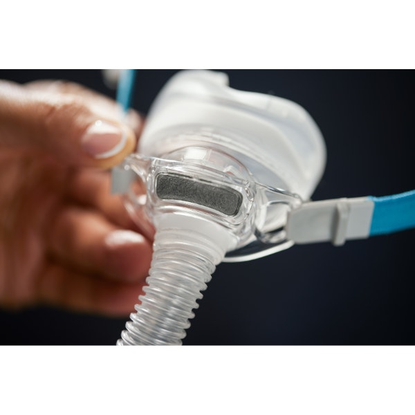 F&P's RollFit™ nasal cushion features pivoting clips that allow the cushion to conform to your nose, and roll with your sleep movements to help provide a stable seal that enables you to sleep in your preferred sleeping position without compromising on performance or comfort.