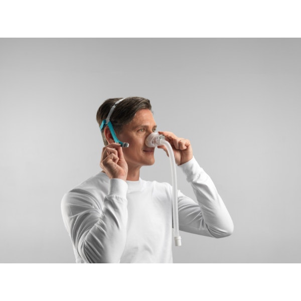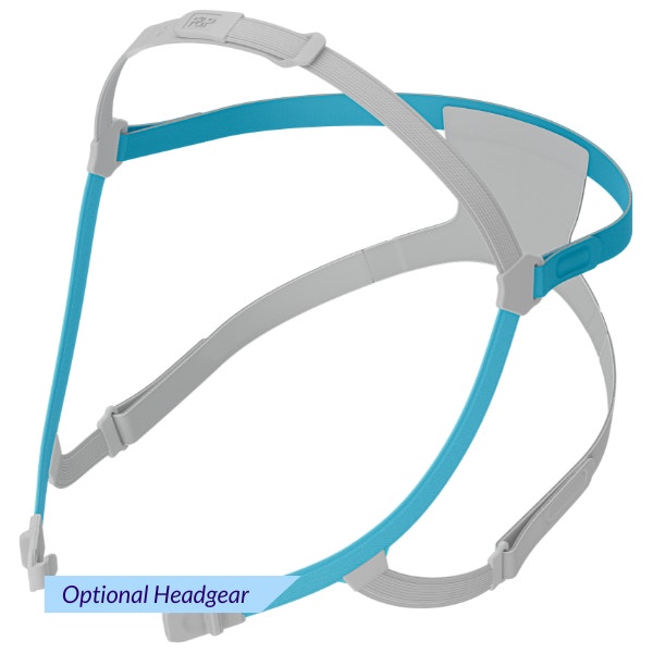 The SpringFit™ headgear is designed with rigid side arms to provide a clear field of view, and enable you to swing the headgear around your head while preventing your air tubing from tangling. Includes a unique tubing clip that provides the option to attach your CPAP tube at the top of your head.