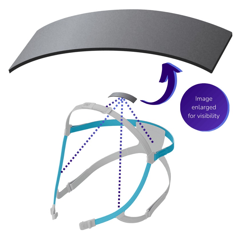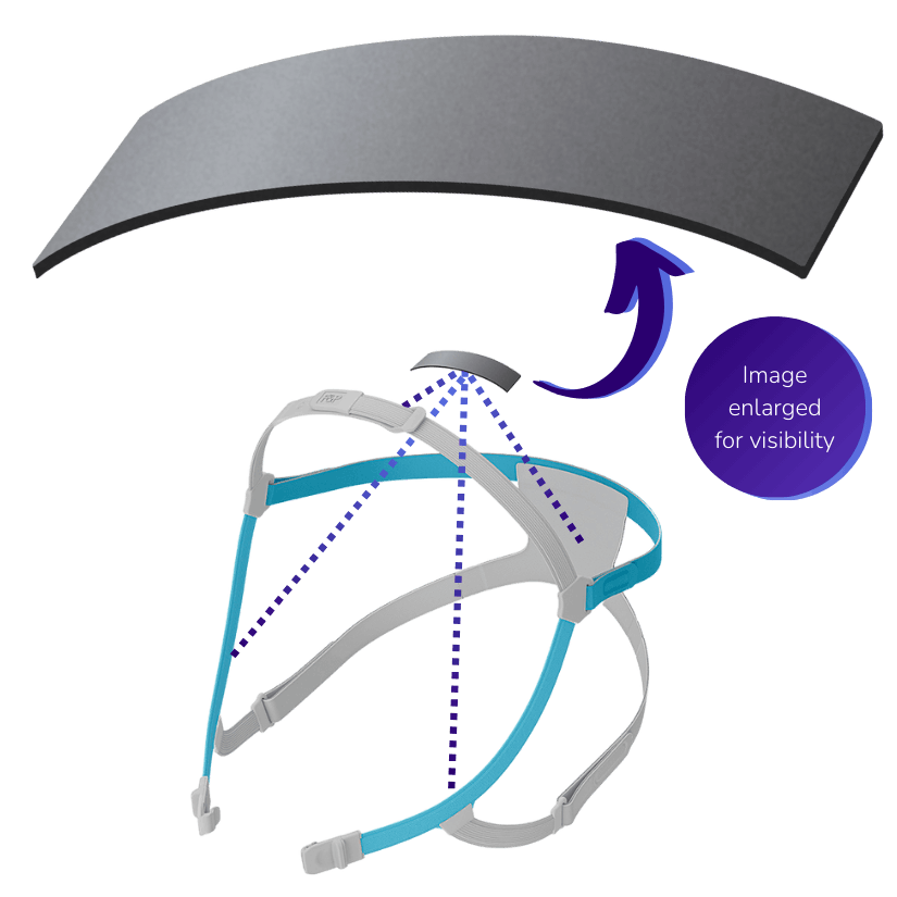 The SwingFit™ headgear is designed with rigid side arms to provide a clear field of vision while enabling you to swing the headgear around your head without getting the air tubing tangled. Includes a unique tubing clip that allows you to attach your CPAP tube at the top of your head to reduce tubing pull and drag during sleep.