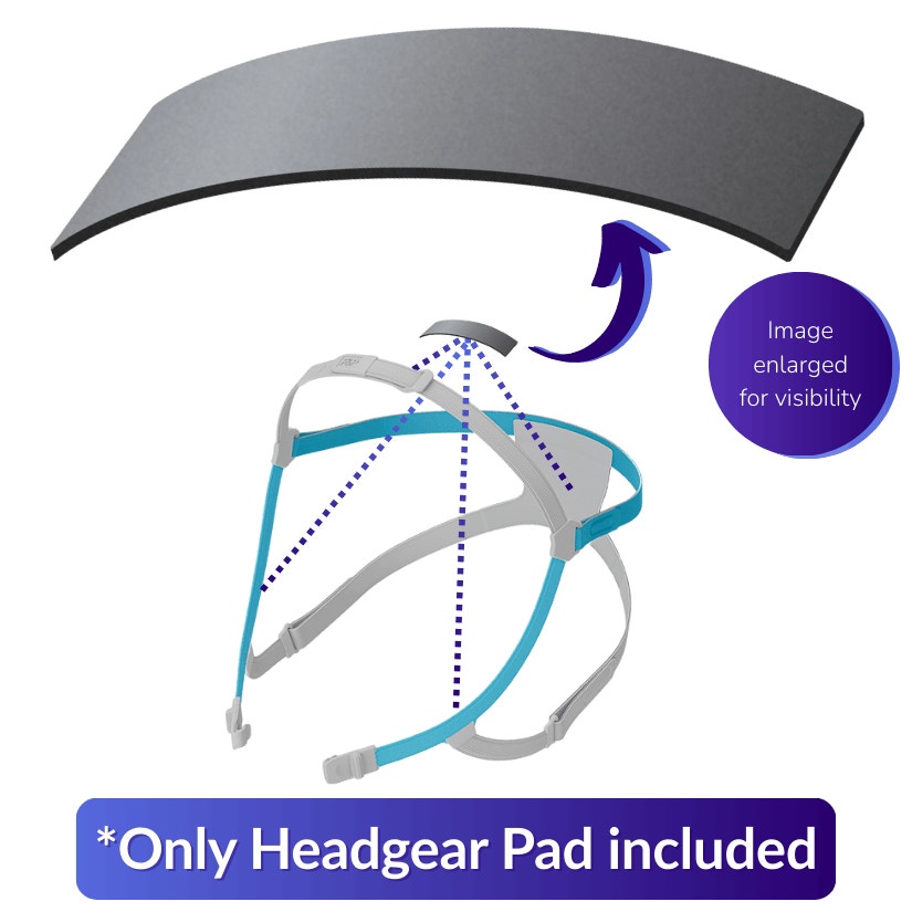 - The Headgear Pad is a single-time setup item and cannot be removed once it has been applied. To use the Headgear Pad, remove the backing layer from the Headgear Pad to expose the sticky adhesive layer.