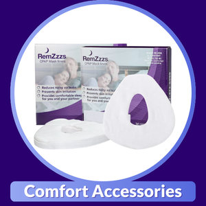 CPAP Comfort Accessories: Comfort accessories include a wide range of supplies such as mask liners, chinstraps, silicone mask cushions, and CPAP hose covers. These items help in enhancing comfort and compliance with your sleep apnea therapy.