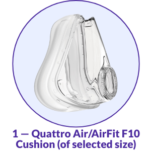 This is the replacement cushion compatible with AirFit™ F10, Mirage Quattro™ Air, and Quattro™ Air for Her Full Face CPAP Mask Systems.