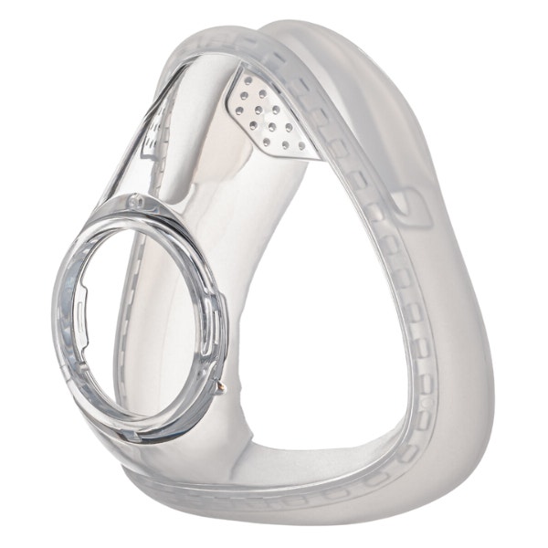 The Siesta Full Face CPAP mask from React Health supplies boasts an ergonomic mask frame, a self-adjusting cushion, no forehead support, and a 360° swivel elbow to help you get the most out of your sleep apnea therapy. Unlike a nasal mask or nasal pillow, a full face mask offers nose and mouth coverage, ideal for those who like the security knowing that mouth breathing won’t affect their sleep therapy. With a multi-port exhalation to disperse air efficiently, the Siesta full face mask offers quiet operation that won’t disturb your sleeping partner.
