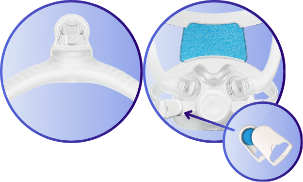 The AirTouch™ F30i’s UltraCompact ComfiSoft™ mask cushions feature moisture-wicking fabric surrounding the mouth at the seal and rest gently under your nose to help reduce bulk, red marks and skin irritation.
