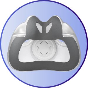 Combines maximized comfort and the optimal performance of a reliable seal with Resmed's innovative ComfiSoft™ silicone-coated fabric cushion and their AdaptiSeal™ technology that contours to your unique facial shape without any rigid plastic. The design of the nasal septum bridge is engineered to hold the shape of the cushion to create a comfortable and reliable seal.