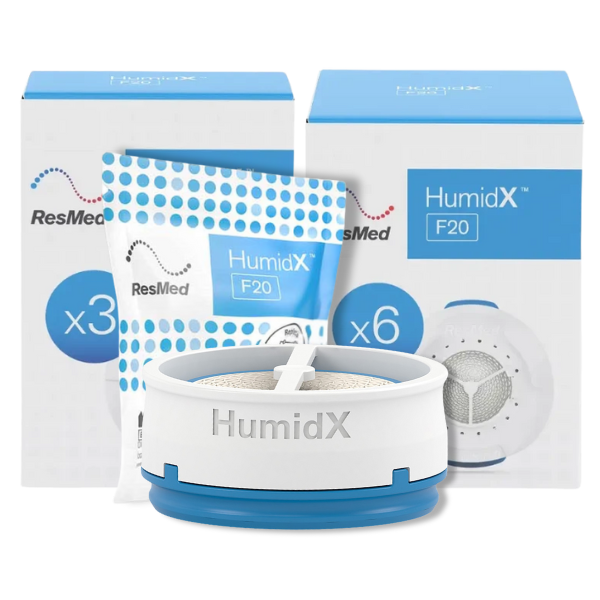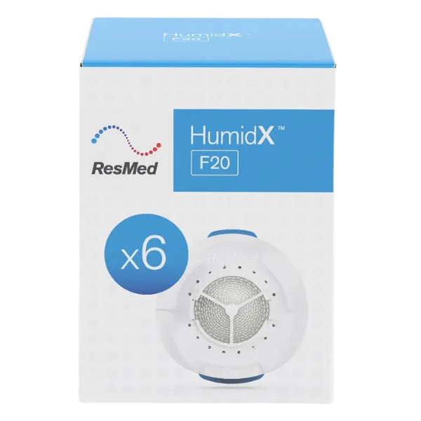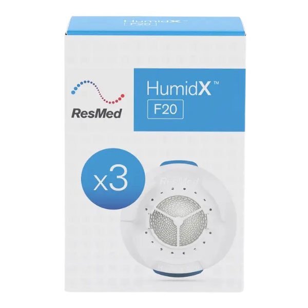Get the best sleep with this convenient 3-pack of Resmed HumidX™ heat and moisture exchange filters for the AirMini™ CPAP machine and F20 Full Face CPAP mask. The HumidX™ provides waterless humidification by captruing heat and moisture while you exhale, then releasing when you inhale to humidify your airflow. Compatible only with the Resmed AirFit™/AirTouch™ F20 series Full Face CPAP Masks (including the "for Her" series).