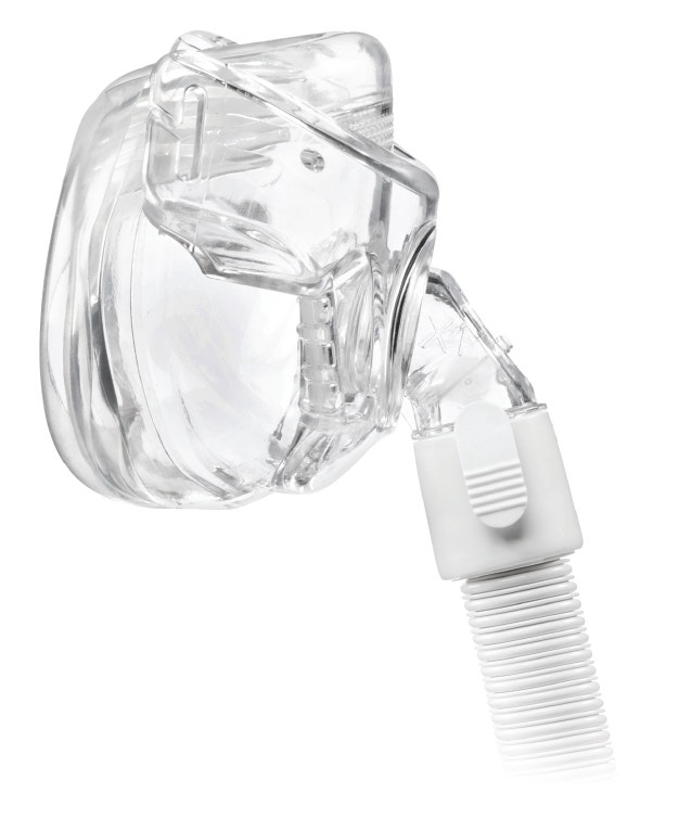 Open Vision Design - This design offers a wide range of visibility. This full face mask is controlled by the strong seal created around the base of the nose and mouth, with additional support provided by headgear extending from the front of the mask to the crown of the head. Unlike other full face masks, it does not need a forehead support to steady the mask.
