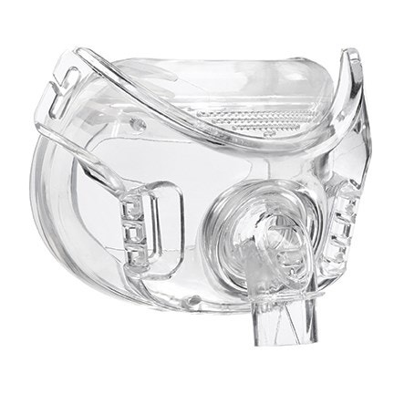 Under the Nose Cushion - A rectangular hole is found at the top of the full face cushion. This nostril opening is intended to allow the necessary pressure into the nostrils without irritating the nose. Gently glide your nose over the nostril opening to find the intended fit. Please Note: The user must keep their nose above the nostril opening, not letting it fall through the crevice. CPAP therapy is impaired when the nose is not securely placed over the opening.