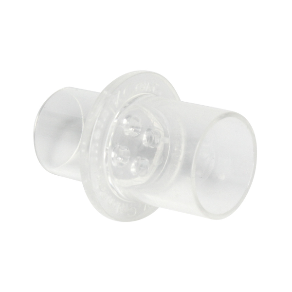 Remove the V-Com product from package and place into the noninvasive breathing circuit between the hose from the machine and the mask.
