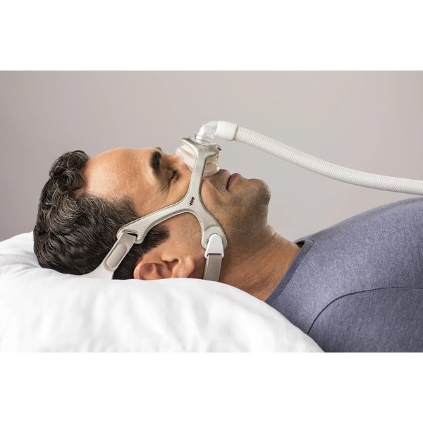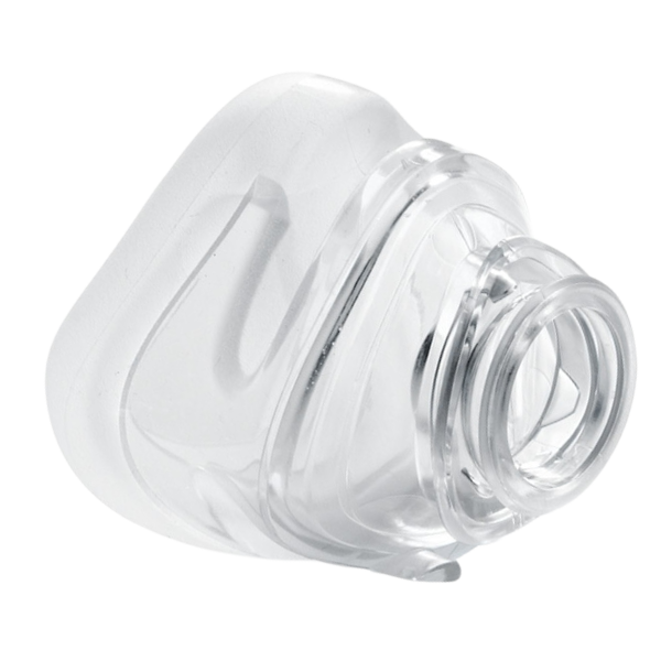 The small nasal mask minimizes contact with the skin to reduce skin discomfort and help patients feel more natural during treatment. The cushion is available in multiple sizes to accommodate for all patients. Because this nasal mask does not have a forehead cushion, patients enjoy a clear line of sight. They are able to watch TV or read while receiving sleep apnea therapy.
